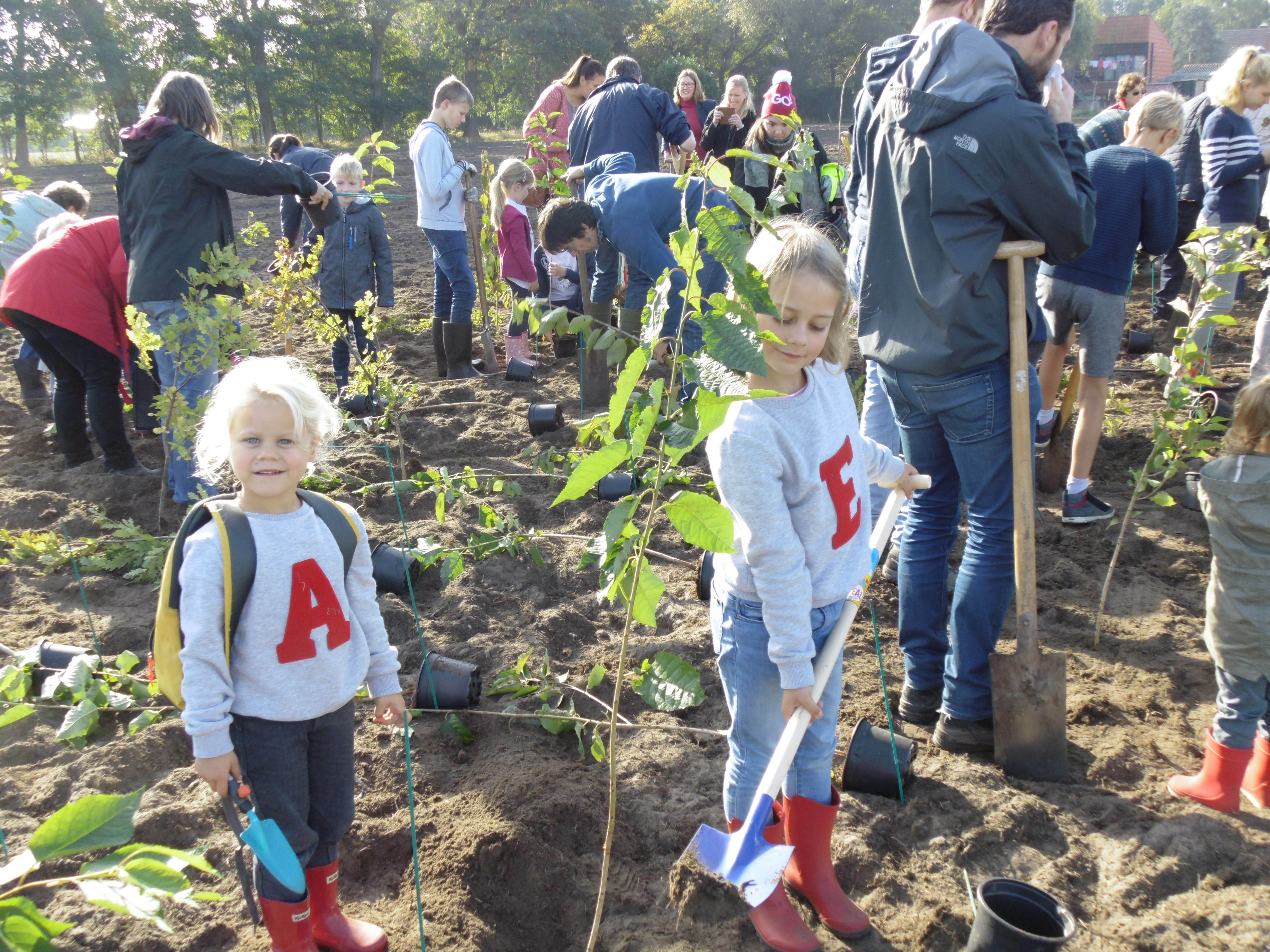 Zo werden de eerste 200 boompjes geplant in de aanwezigheid van een mooie herfstzon. Basisschool De Regenboog zal gebruik kunnen maken van ons bos als recreatiegebied. Het bos wordt officieel gedoopt als het 'Regenboogbos'.